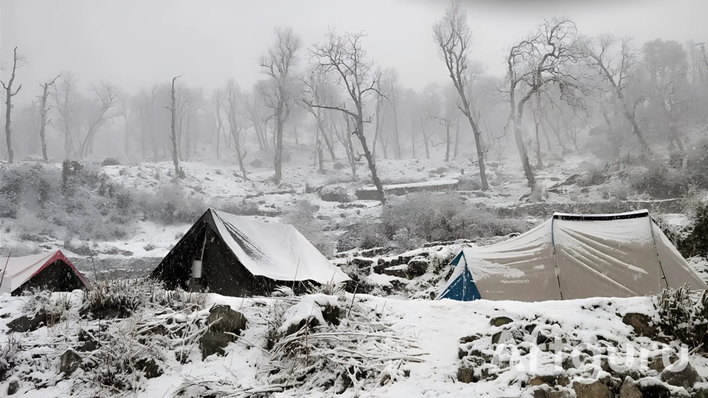 Trek through snow-laden trails and pristine alpine meadows. The landscape transforms into a winter paradise as you gain altitude. Cross Tali Forest Camp and continue to Khullara, where expansive snow-covered bugyals greet you with unobstructed Himalayan panoramas. Set up camp amidst this spectacular setting.